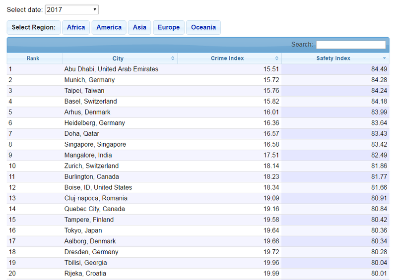 The website surveyed 378 cities and ranked them according to the crime index rate of each city. Cities with a crime index rate below 20 mean that they are extremely safe, while cities with a crime rate between 60 and 80 are considered high-crime areas. A crime index rate between 20 and 40 is considered low, while a rate falling between 40 and 60 is medium, according to the website.