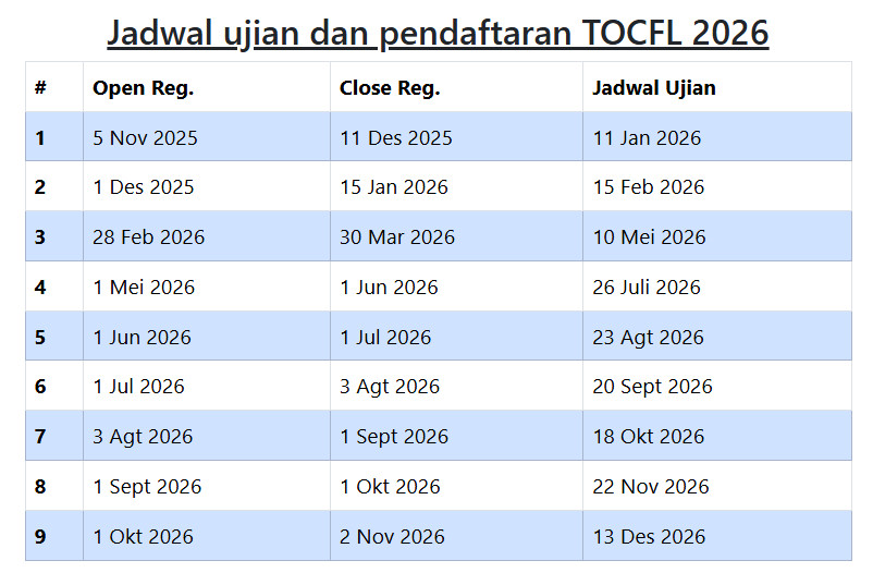Salah satu keunggulan TOCFL adalah standar penilaiannya yang mengacu pada kerangka kompetensi bahasa internasional, sehingga hasilnya diakui secara luas. Ujian ini diselenggarakan di berbagai negara dan wilayah, sehingga memudahkan peserta dari berbagai latar belakang untuk mengikuti tes. Materi ujian biasanya berfokus pada penggunaan bahasa Mandarin tradisional yang umum digunakan di Taiwan, namun tetap relevan untuk komunikasi global.